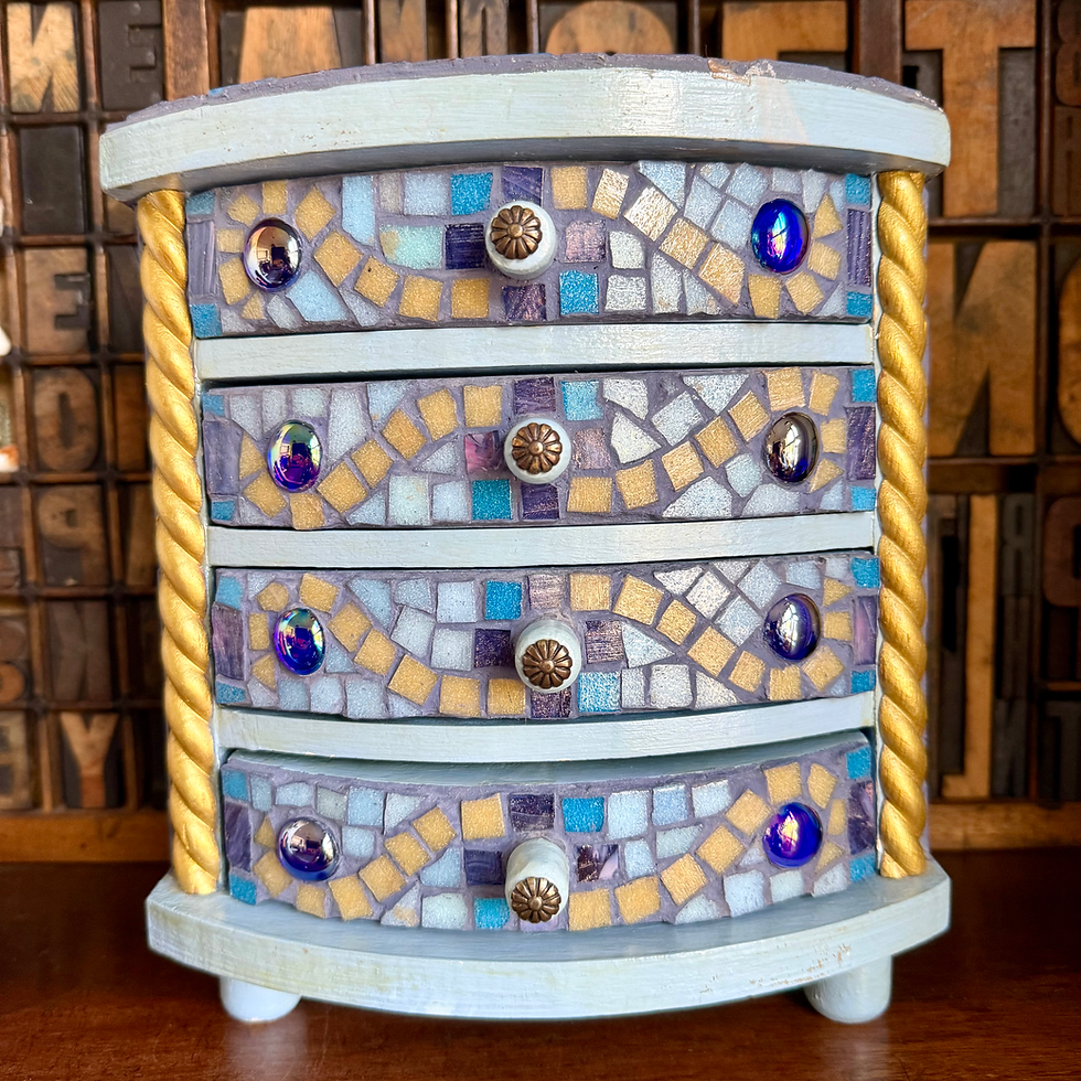 Alongside the working studio is the little shop. A wide selection of art, handmade jewellery, limited edition art prints, vintage furniture,